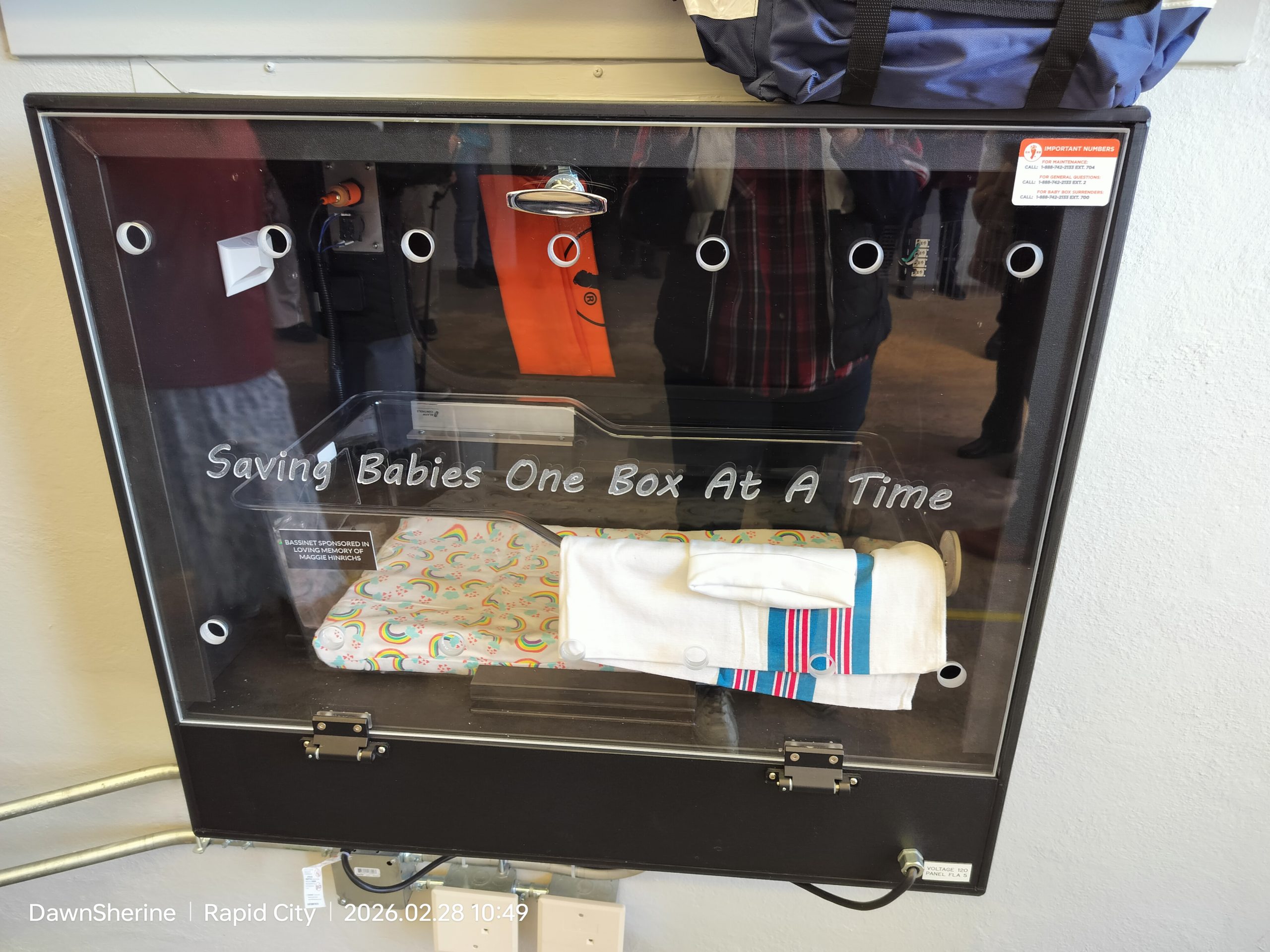 The dedication of South Dakota’s first Safe Haven Baby Box ended not with a demonstration of life-saving mechanics but with an a cappella rendition of God bless America and a crowd that quietly wandered off into the cold. Behind the podium, strategically placed to obscure the view, the exterior door of the box remained noticeably shut. There was no simulated rescue. There was no alarm and notably there was no fire chief present.